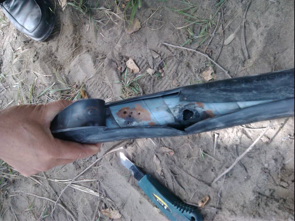 故障電纜的前敵成群連片端啟幕,一只手握有黑表筆,紅表筆沿著故障電纜的絕緣層緩慢滑跑。電纜無斷點處的電壓值大約為0.445V左右。當(dāng)紅表筆移步到某處時,萬用表展示的電壓值狂跌為正常電壓的1/10即0.04V時。此時基本可以咬定斷點居于該哨位上前(火線成群連片端)15cm處。