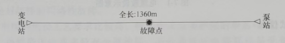 此線路經(jīng)第一次跳閘修復(fù)后相隔10天又發(fā)生跳閘,用兆歐表測(cè)量B相對(duì)地絕緣電阻為0,在泵站端用萬(wàn)用表測(cè)量B相對(duì)地絕緣電阻為500Ω,在變電站測(cè)量B相對(duì)地絕緣電阻為100Ω,兩次測(cè)量值不一樣,分析可能發(fā)生了斷線故障,經(jīng)過(guò)連續(xù)性測(cè)試確定為B相斷線,于是最后確診該線路發(fā)生了單相開(kāi)路并接地故障,應(yīng)選用低壓脈沖法測(cè)量電纜的故障距離。電纜敷設(shè)情況如圖1-1所示。